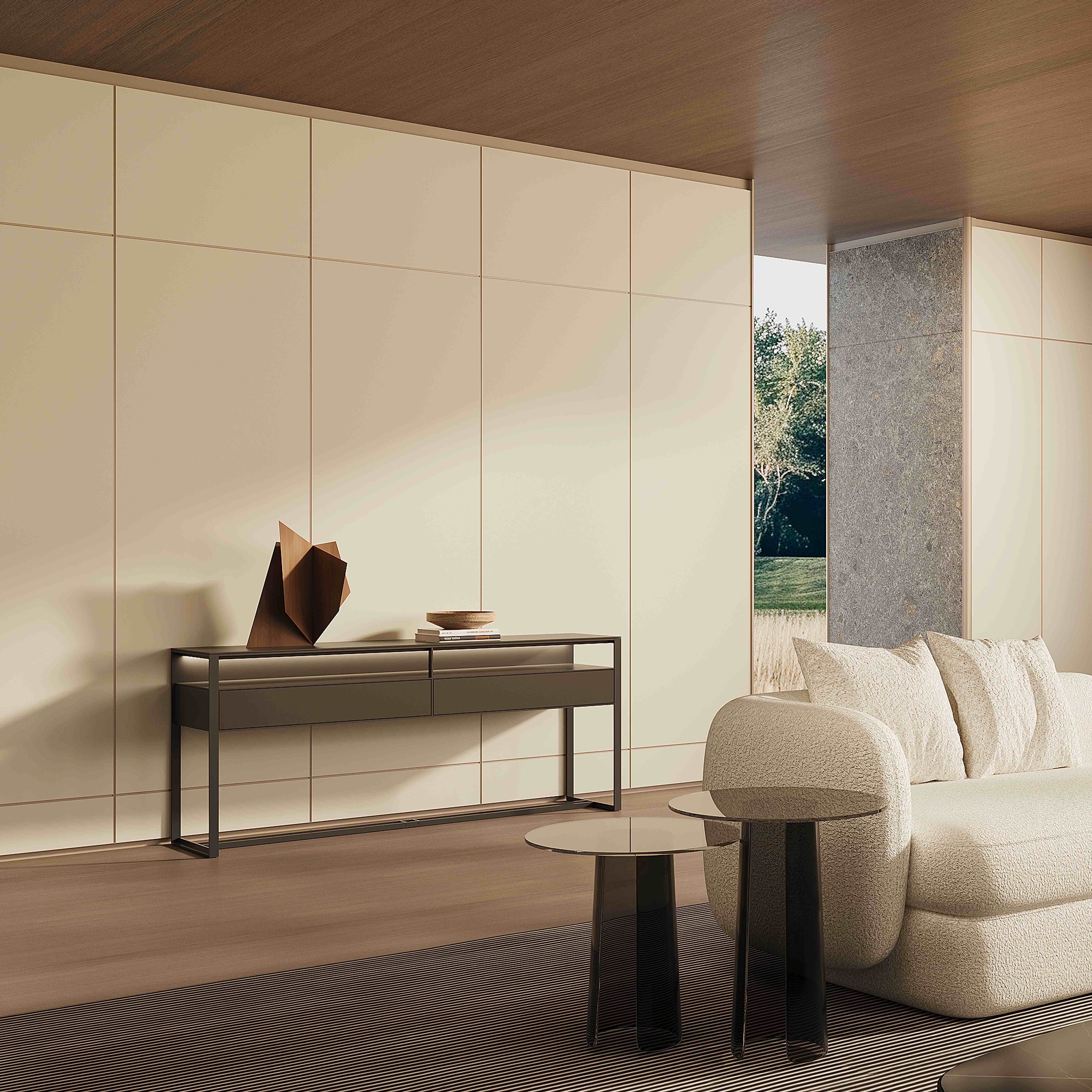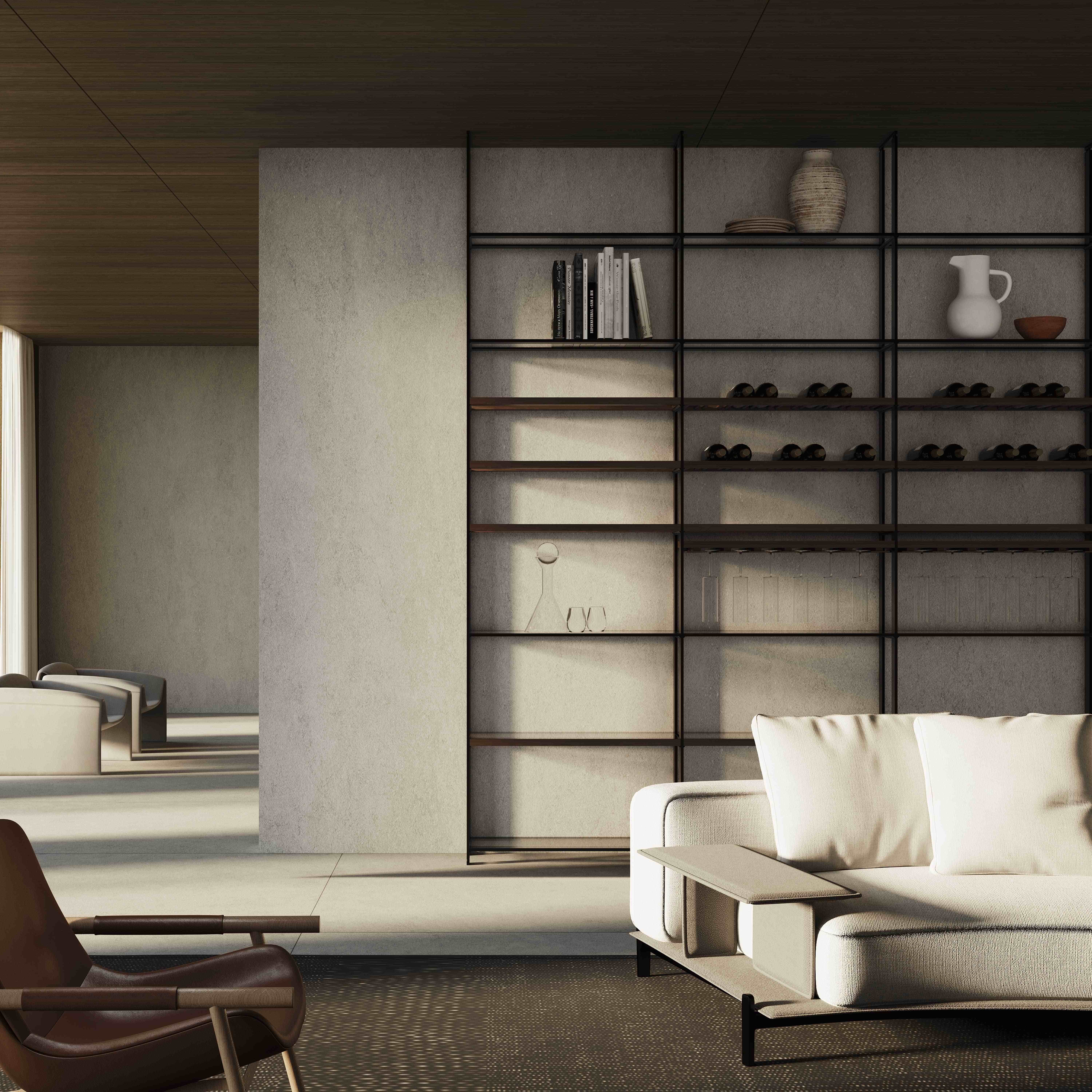 採用自主開發的模塊化設計,採用鋁合金框架,結合玻璃、燒結石和陶瓷表面。底櫃、高櫃、島系統靈活組合,滿足多樣化個性化需求。